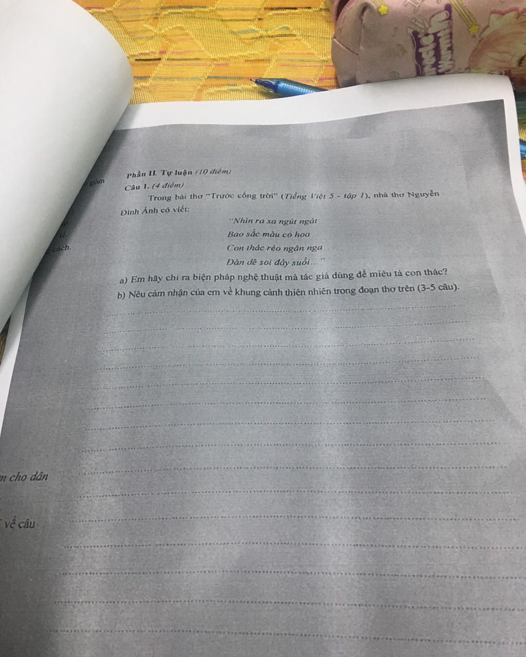 `a)`Biện pháp miêu tả con thác: Nhân hóa `->` Réo ngân nga