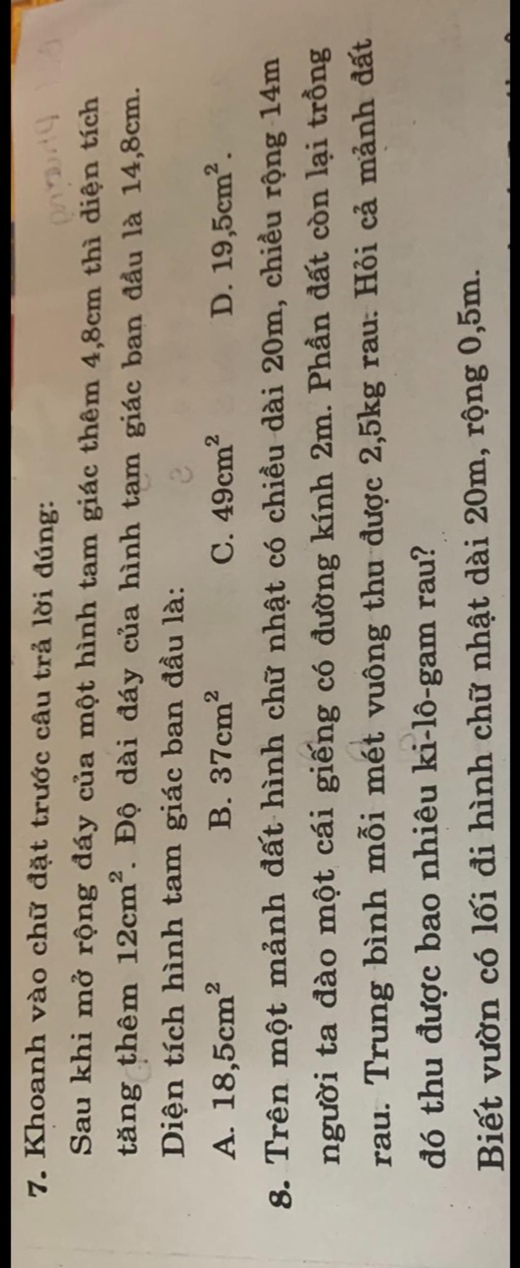 `5 × 14,8 ÷ 2 = 37 (cm^2)`