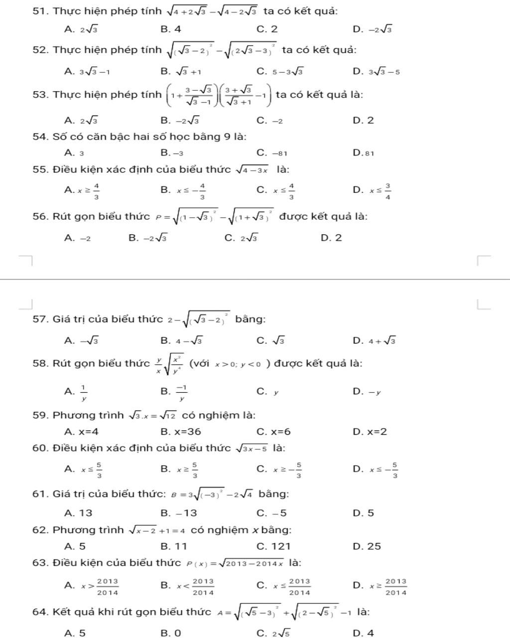 54. D. 81 (Vì $\sqrt[]{81}$ = 9)
