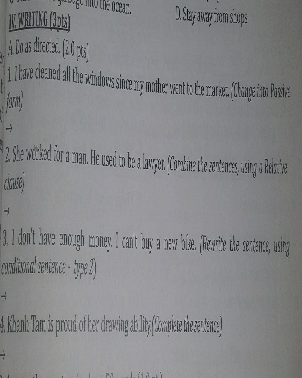 1. I have cleaned all the windows since my mother went to the market. (Change into Passive