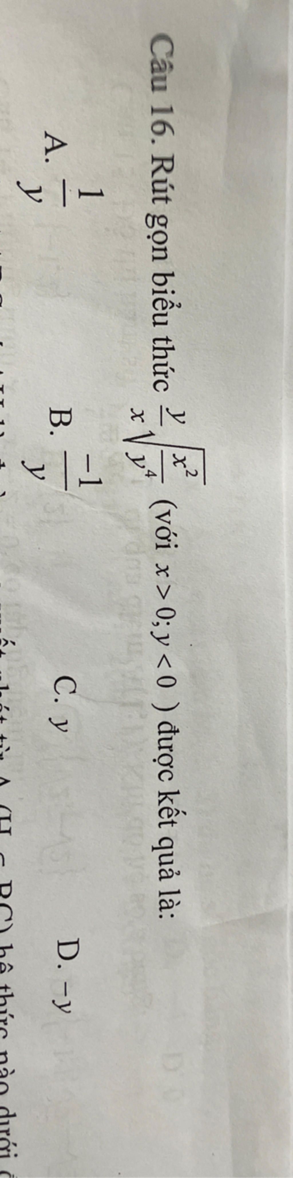 `y/x . sqrt( x^2 / y^4 )` với `( x > 0, y < 0 )`
