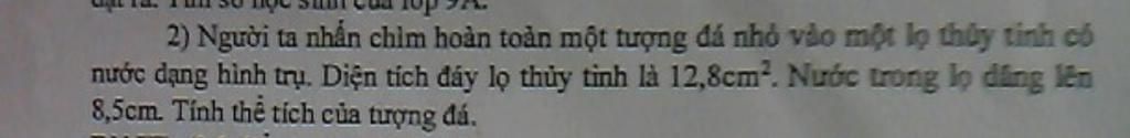 Thể tích tượng đá bằng thể tích nước dâng lên và bằng: