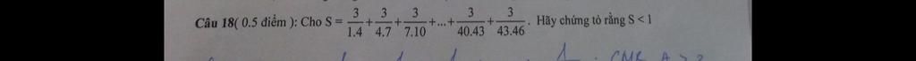 `S = 1 - 1/4 + 1/4 - 1/7 + 1/7 - 1/10 + ... + 1/40 - 1/43 + 1/43 - 1/46`