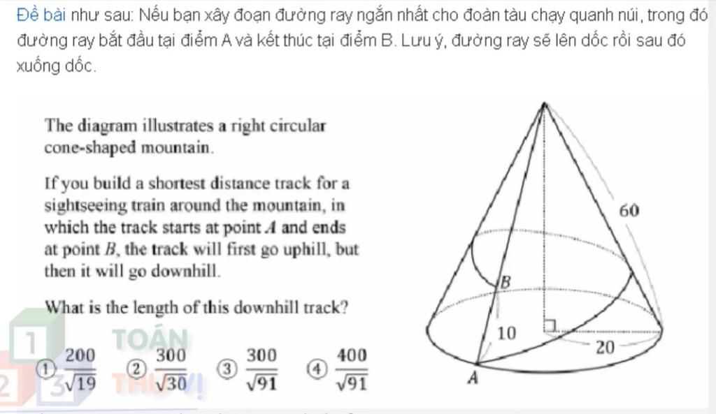 Đề bài như sau: Nếu bạn xây đoạn đường ray ngắn nhất cho đoàn tàu chạy quanh núi, trong đó