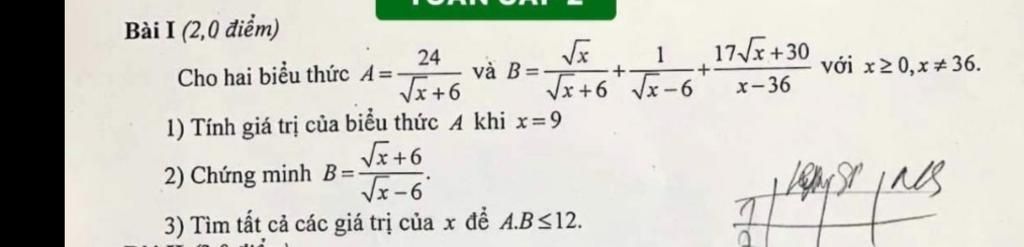 3) Tìm tất cả các giá trị của x để A.B<12.