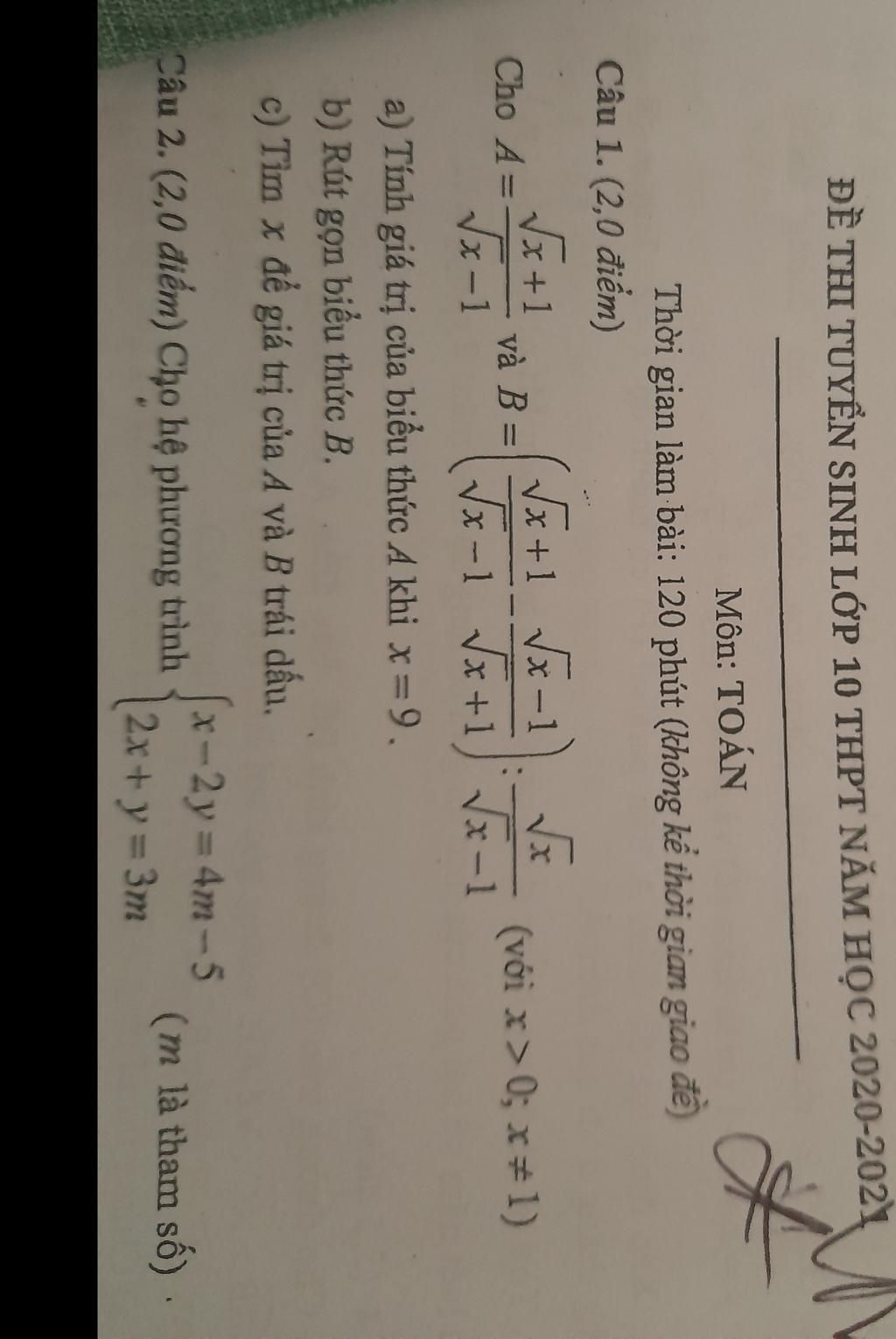 ĐỀ THI TUYỂN SINH LỚP 10 THPT NĂM HỌC 2020-2021