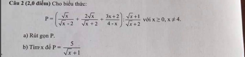 Để `P=5/(sqrtx+1)` thì `(-2)/(sqrtx-2)=5/(sqrtx+1)`
