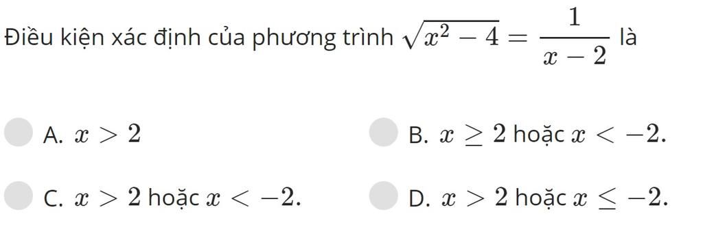Điều kiện xác định : $\begin{cases} x^2-4\ge0\\x-2\ne0 \end{cases}$