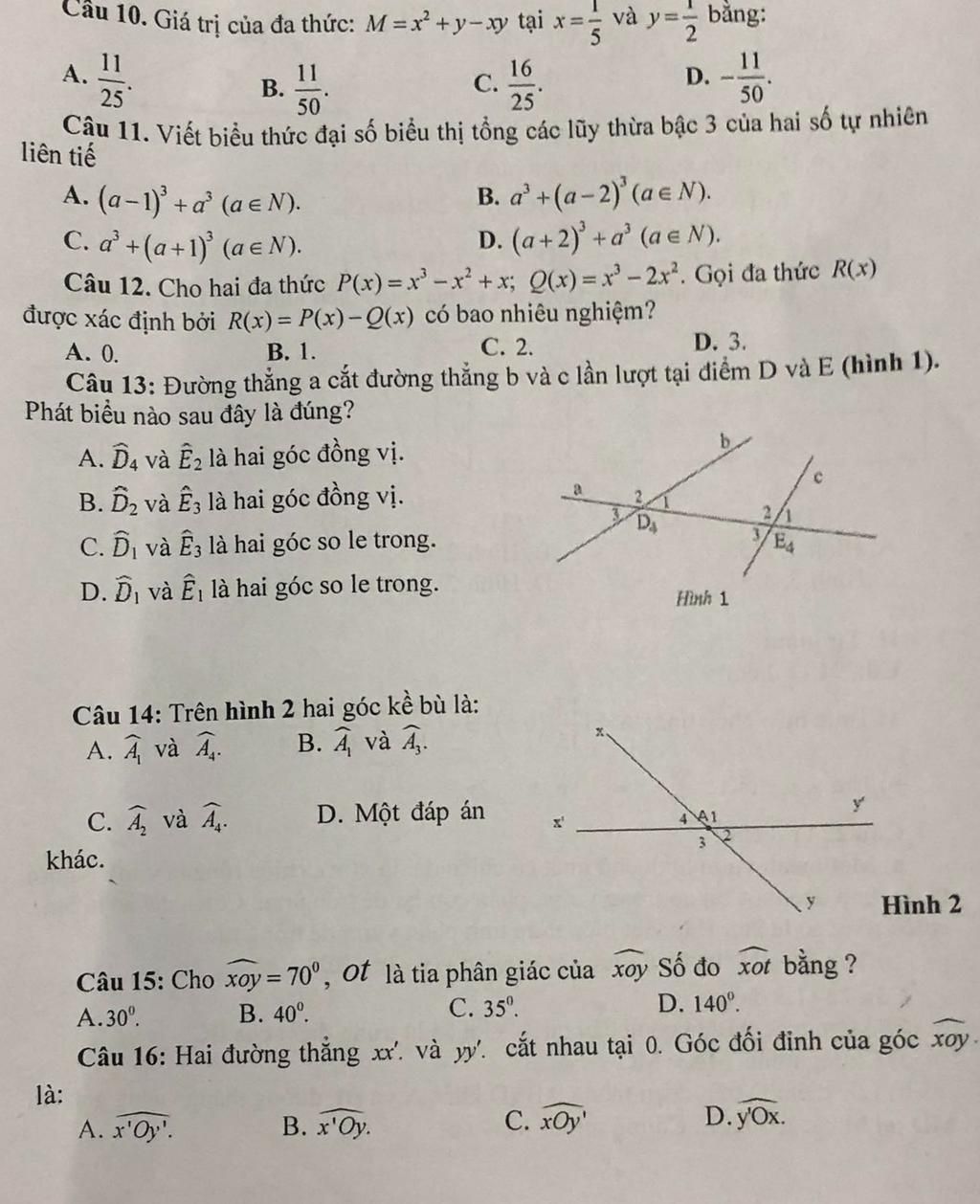 Câu 10. Giá trị của đa thức: M=x+y−xy tại x=s