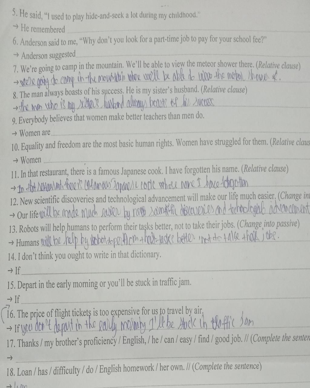 6. Anderson said to me, "Why don't you look for a part-time job to pay for your school fee?"