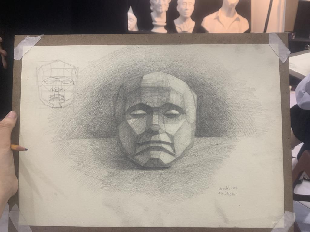 Gửi bạn bài tượng thạch cao khối mặt nạ mình vẽ cách đây 1,2 tháng