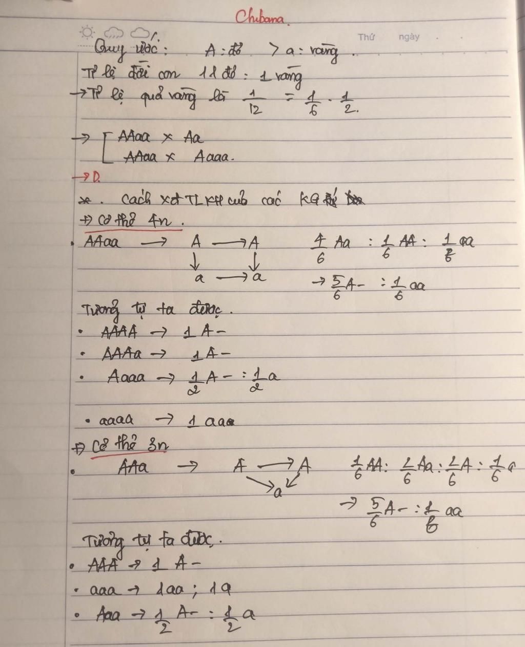 Ở cà chua có cả cây tứ bội và cây lưỡng bội. Gen A quy định quả màu đỏ là trội hoàn toàn so với alen a quy địոh quả màu vàng. Biết rằng, cây tứ bội giảm phân bình thường và cho giao tử 2n, cây lưỡng bội giảm phân bình thường và cho giao tử n. Các phép lai cho tỉ lệ phân li kiểu hình 11 quả màu đỏ: 1 quả màu vàng ở đời con là: