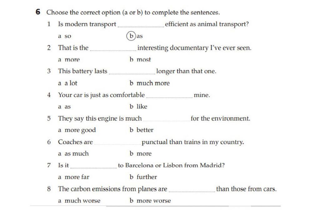 6 Choose the correct option (a or b) to complete the sentences.