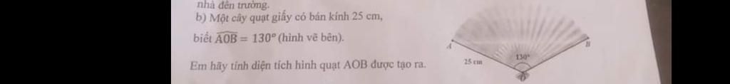 Vậy diện tích hình quạt $AOB$ được tạo ra là $\dfrac{8125}{36}\pi(cm^2)$
