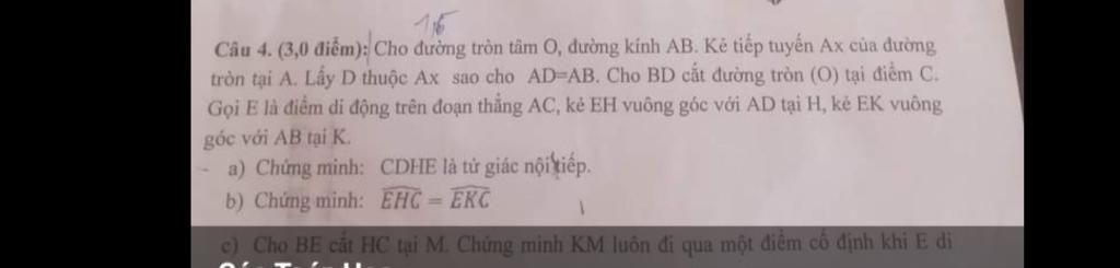 Ta có: $\widehat{EKB}=\widehat{ECB}=90^o\to EKBC$ nội tiếp