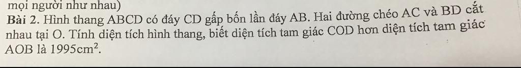 Bài 2. Hình thang ABCD có đáy CD gấp bốn lần đáy AB. Hai đường chéo AC và BD cắt