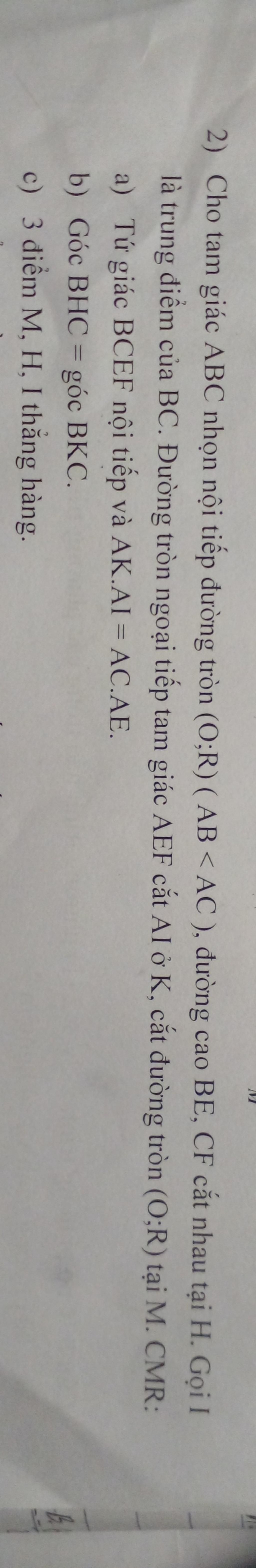 b.Gọi $D$ là trung điểm $AH\to D$ là tâm đường tròn ngoại tiếp $AEKHF$