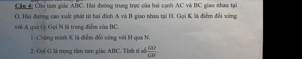 Câu 4: Cho tam giác ABC. Hai đường trung trực của hai cạnh AC và BC giao nhau tại