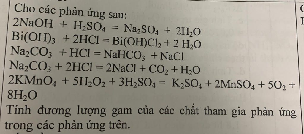 Tính đương lượng gam của các chất tham gia phản ứng