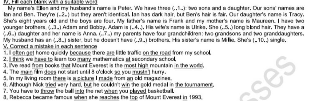 lan and Ben. They're (..2..) but they aren't identical. lan has dark hair, but Ben's hair is fair. Our daughter's name is Tracy.
