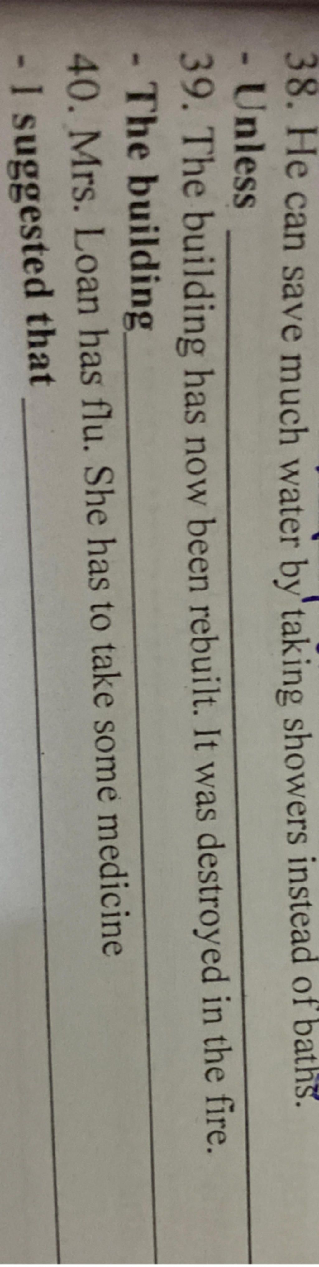 `38` Unless he takes showers instead of baths , he can't save much water .