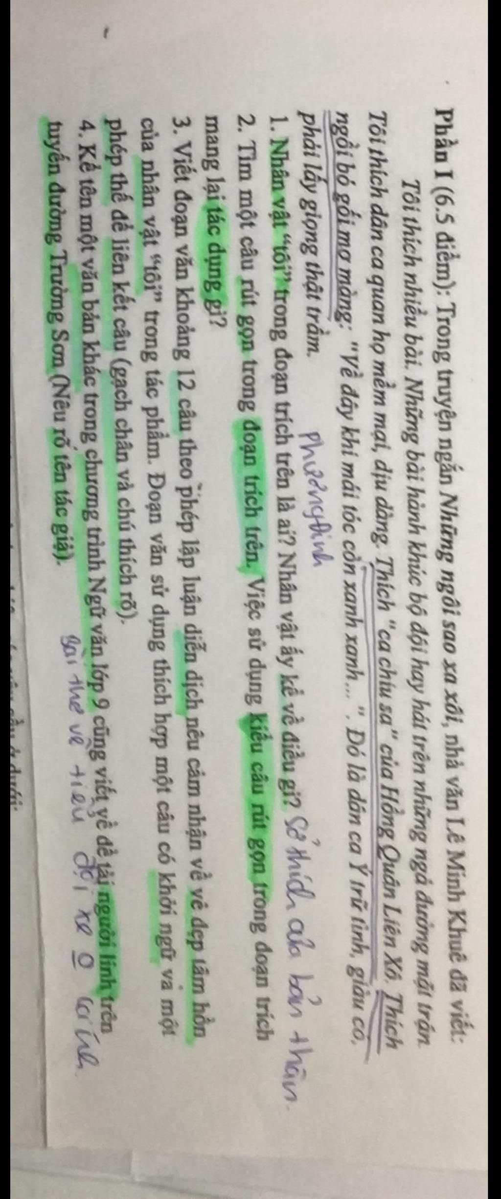 1. Nhân vật "tôi" trong đoạn trích là Phương Định. Nhân vật ấy kể về những bài hát mà nhân vật ấy thích.