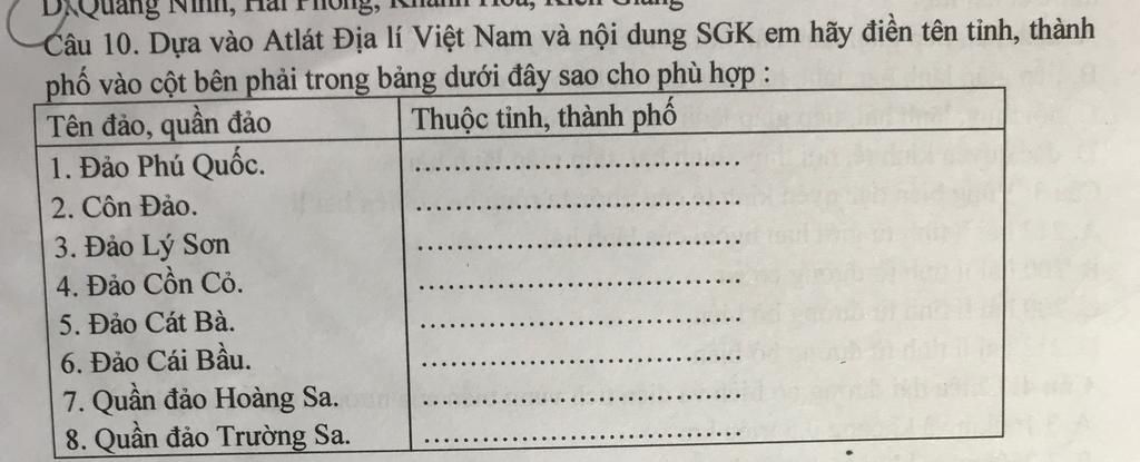 `2.` Côn Đảo `->` thuộc tỉnh Bà Rịa- Vũng Tàu