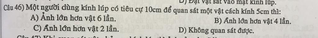 Tiêu cự 10 cách thấu kính 5cm thì ảnh này lớn hơn vật 10 : 5 = 2 lần