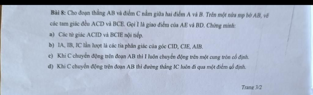 các tam giác đều ACD và BCE. Gọi I là giao điểm của AE và BD. Chứng minh: