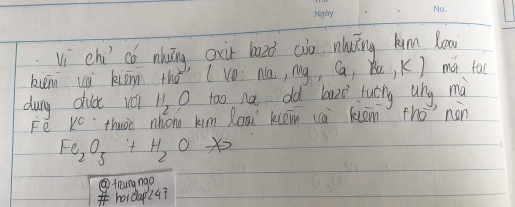 Nên phản ứng $Fe_2O_3+H_2O\to$ không xảy ra