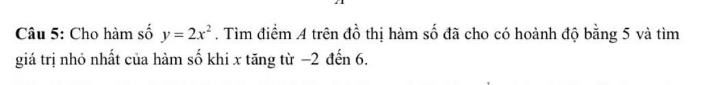 Thay $x=5$ vào phương trình hàm số ta được $y=2.5^2=50$