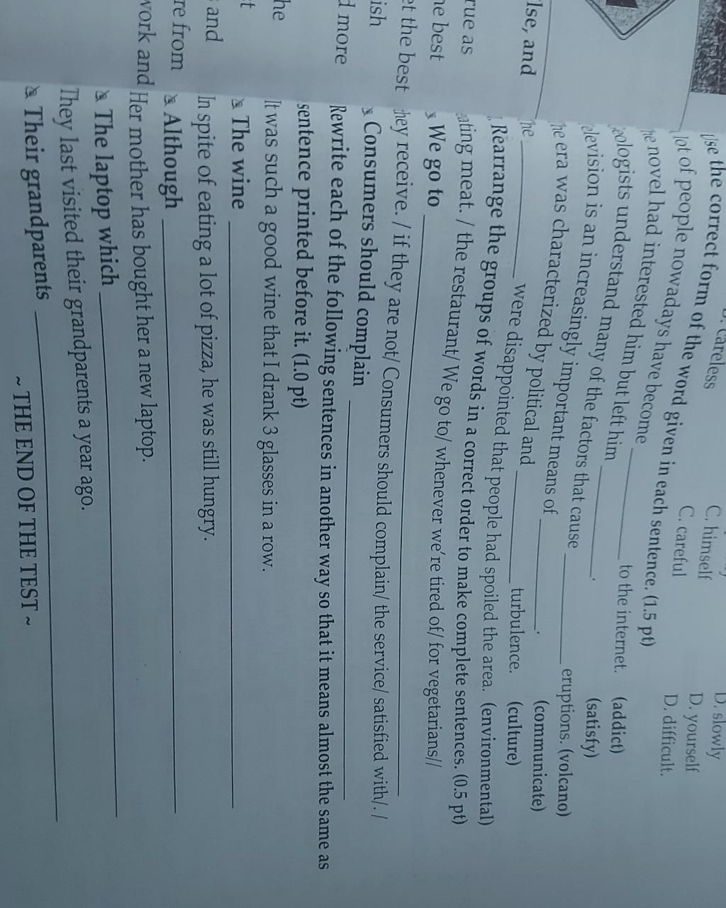 the correct form of the word given in each sentence. (1.5 pt)