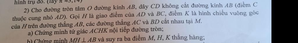 a) Chứng minh tứ giác ACHK nội tiếp đư ...