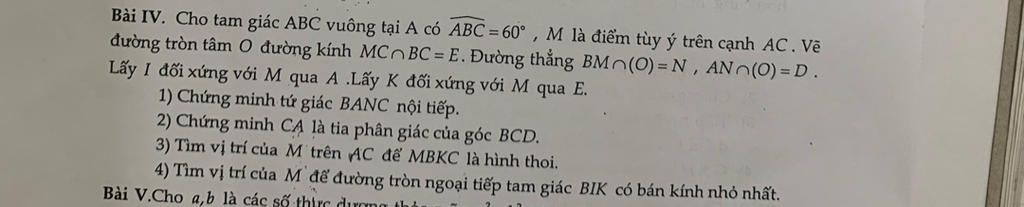 Bài IV. Cho tam giác ABC vuông tại
