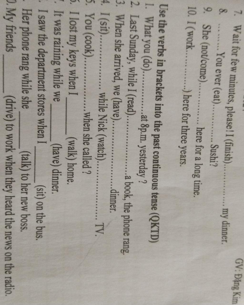 9. was talking (thì QKTD) - DH: while - MĐ trước là QKĐ thì sau là QKTD