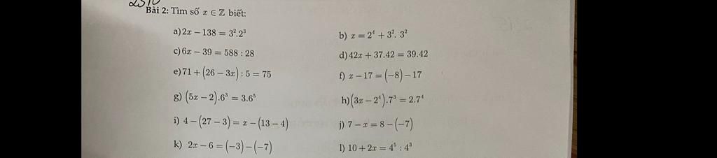 `a) 2x - 138 = 3^2 . 2^3`
