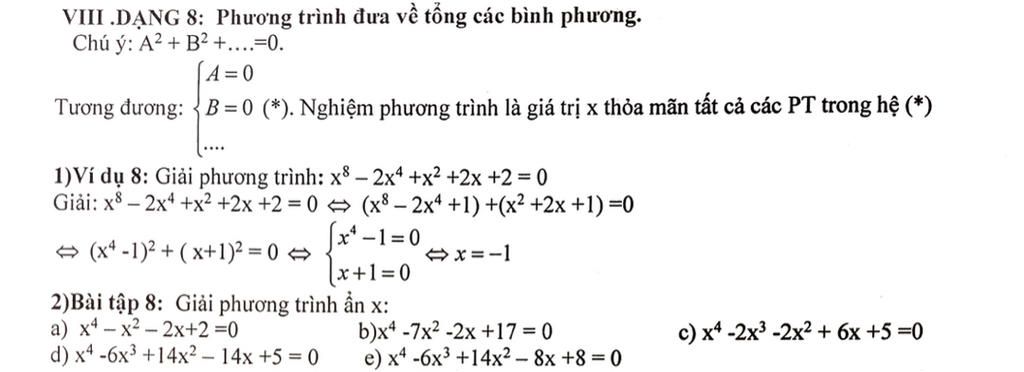 giúp mình 5 câu trong bài tập 8 với, giải theo phương pháp tạo tổng các bình phương nha