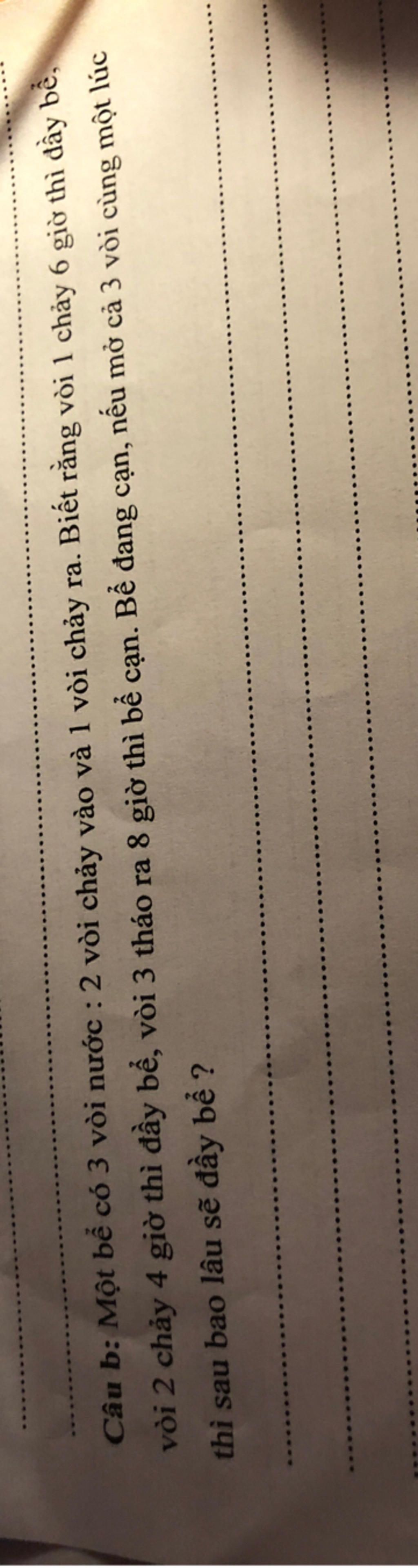 Thời gian để cả `3` vòi chảy đầy bể là :