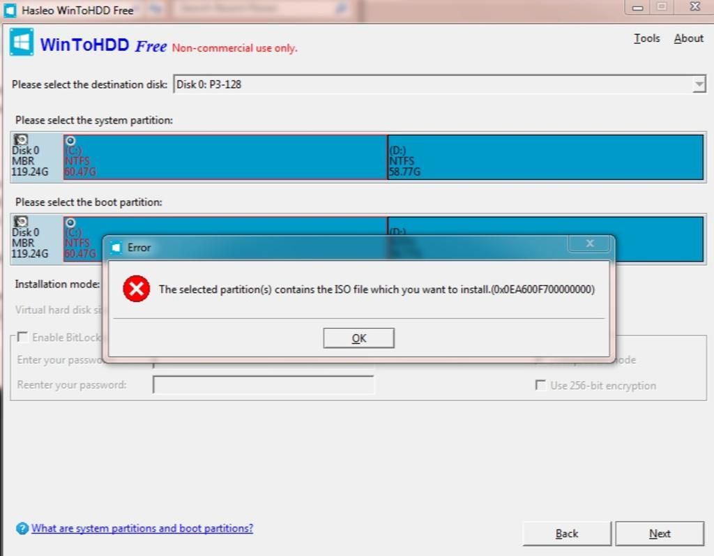 thông báo này có nghĩa là "phân vùng đã chọn có chứa tệp IOS mà bạn muốn cài đặt"