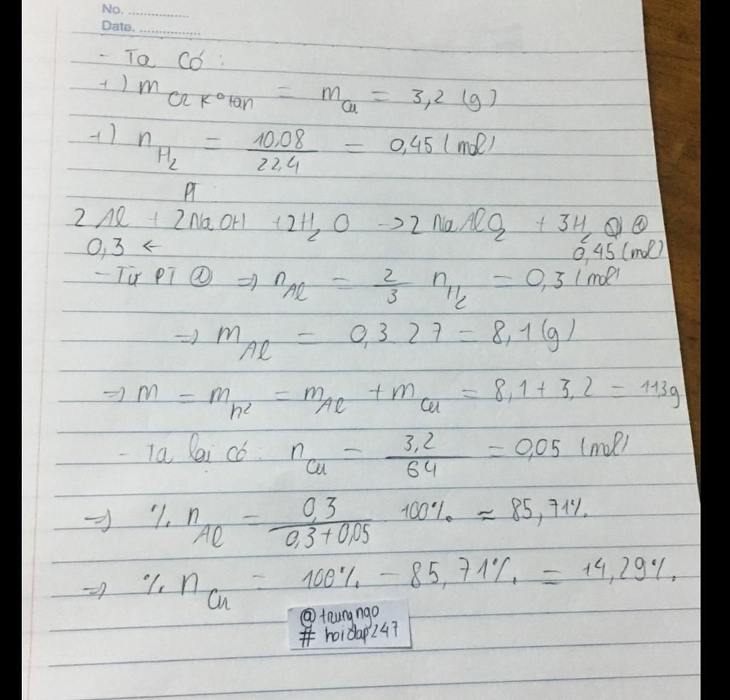 → `m_{hỗn hợp} = m_{Cu} + m_{Al} = 3,2 + 0,3.27 = 11,3 (g)`