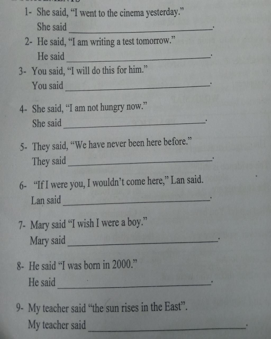 7. Mary said that she wished she had been a boy.