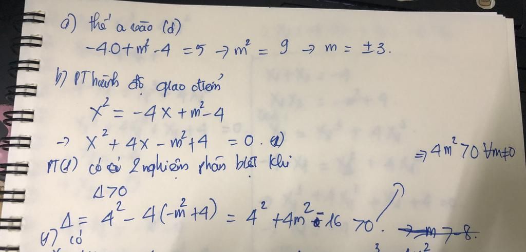A) tìm m để đường thẳng (d) di qua điểm a(0,5)