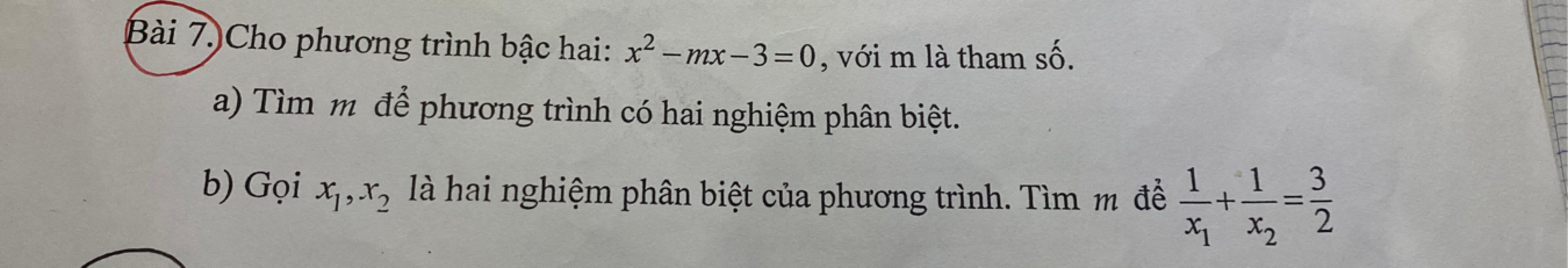 b) Theo định lý Viet, ta có: