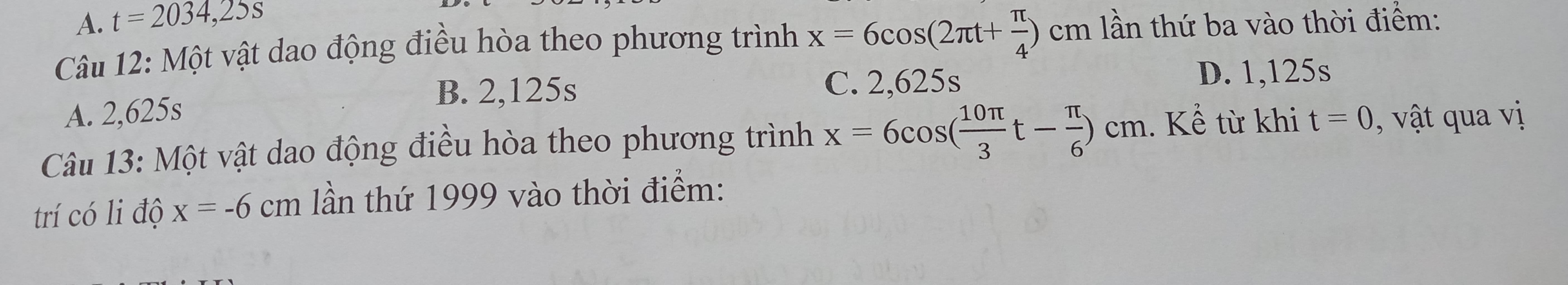 13. Chu kì: $T=\dfrac{2π}{ω}=\dfrac{2π}{\dfrac{10π}{3}}=0,6 \ (s)$