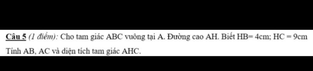 Diện tích `ΔAHC` là :