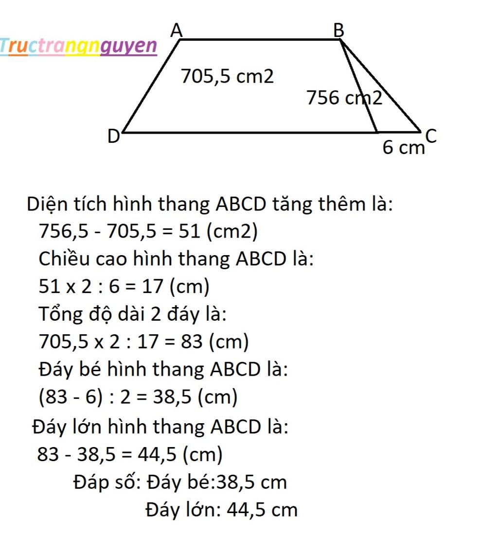 Độ dài đáy lớn là : ( 83 + 7 ) : 2 = 45 ( cm )