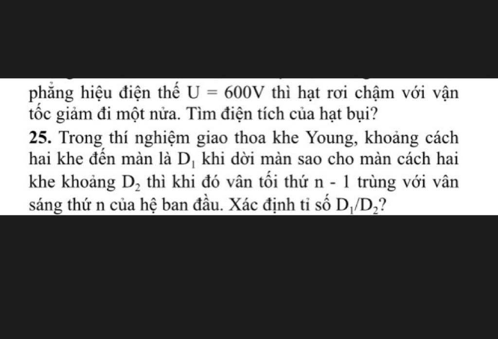 \Rightarrow n.\dfrac{{\lambda {D_1}}}{a} = \left( {n - 1,5} \right).\dfrac{{\lambda {D_2}}}{a}\\