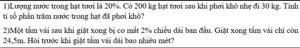 Tỉ số phần trăm của tấm vải sau khi giặt và trước khi giặt là: