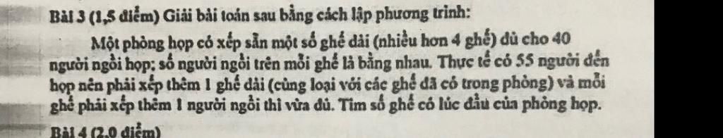 Do trên thực tế có $55$ người đến họp nên phải xếp thêm $1$ ghế dài và mỗi ghế phải xếp thêm $1$ người thì vừa đủ