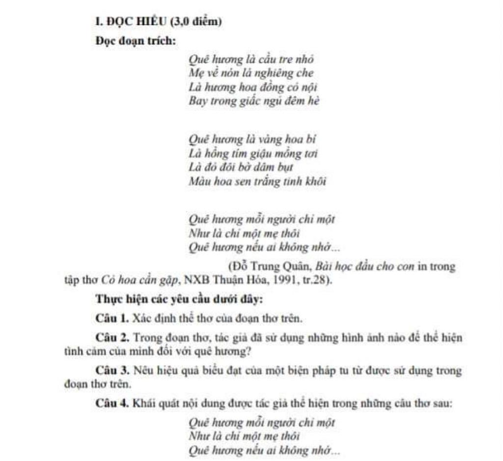 `2,` Trong đoạn thơ, tác giả đã sử dụng những hình ảnh: cầu tre nhỏ, hương hoa đồng cỏ nội, vàng hoa bí, hồng tím giậu mồng tơi, đỏ đôi bờ dâm bụt, màu hoa sen trắng tinh khôi để thể hiện tình cảm của mình đối với quê hương.